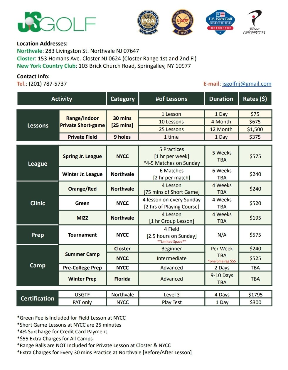 Comprehensive programs and competitive rates for all skill levels